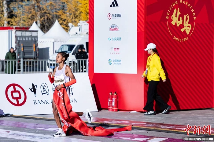 11月2日,2025北京马拉松鸣枪开跑。女子组方面,来自埃塞俄比亚的选手安奇纳卢·德西·根纳赫以2小时26分08秒的成绩获得冠军。中新网记者 刘星晨 摄